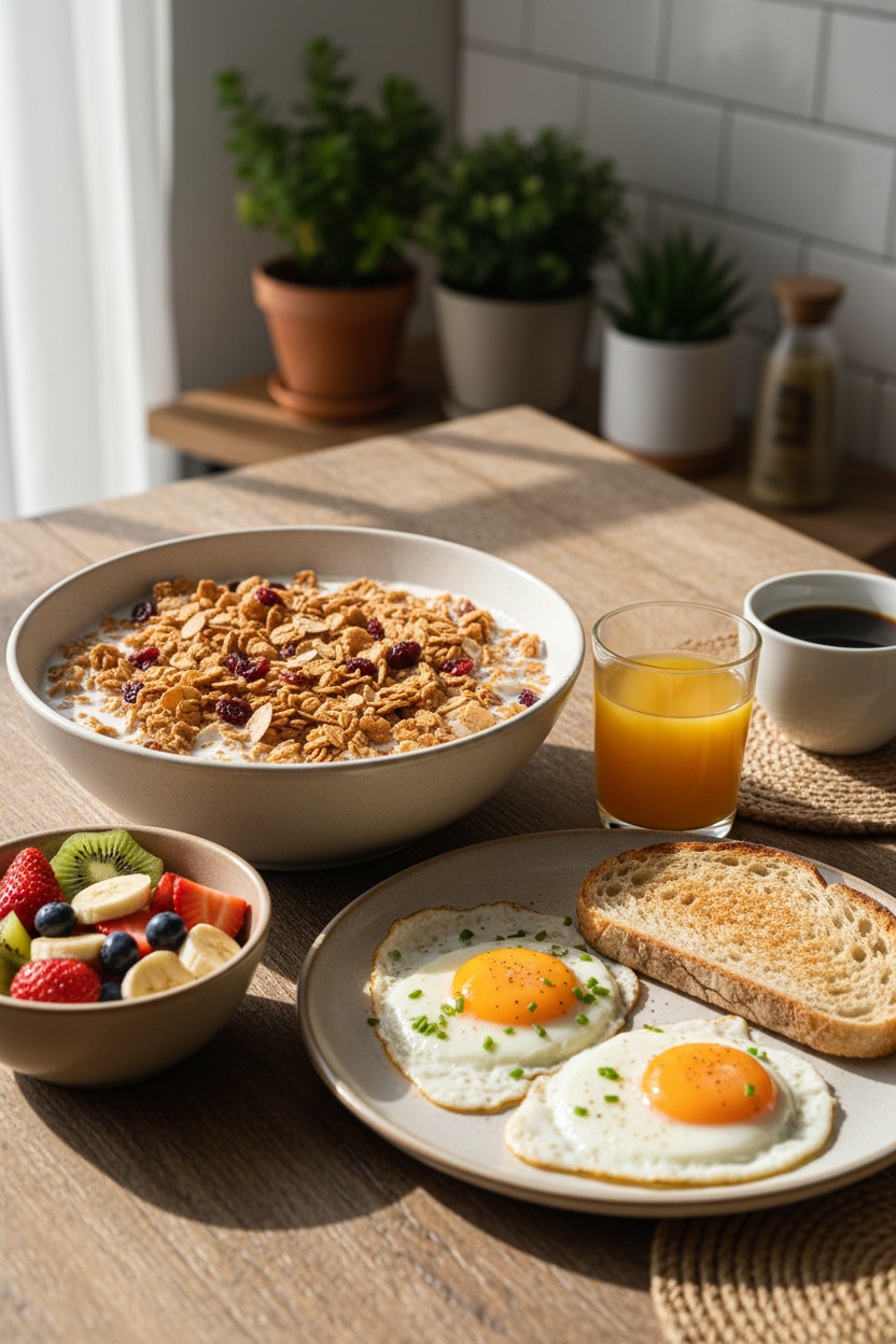 Vi erbjuder en balanserad frukost med färska ingredienser för energi hela dagen.